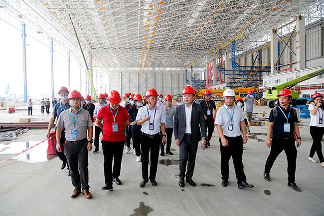 作为航空领域专业起重机供应商,九州酷游品牌此次全程参与,与各品牌加强合作,为航空飞机维修提供精准技术支持,同时九州酷游起重机(北京)有限公司销售总经理于斌作为航空起重机领域资深领导人,引领公司与会人员共同参观广州飞机维修工程有限公司在建的三期机库,深入了解机库的规划设计、施工建设、设施设备等各项内容。