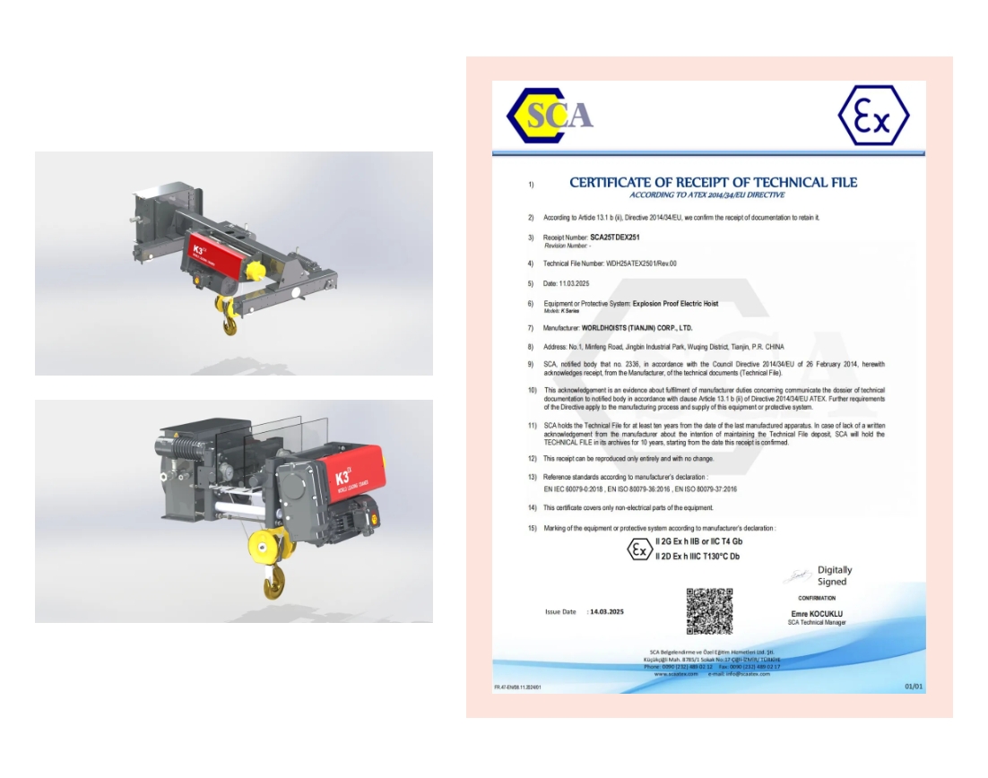 重磅好消息!九州酷游起重机(华德)荣获ATEX防爆认证,开启欧洲市场新纪元!